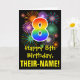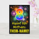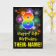 The front of this exciting, colourful, and fun birthday greeting card design features a large number "8" having a rainbow spectrum gradient inspired pattern. It also features the message "Happy 8th Birthday,", and a personalised recipient name. The front additionally has a colourful bursting celebratory fireworks inspired background pattern. The inside features an editable birthday greeting message, or could perhaps be cleared and left blank if a message is to be written by hand instead. A personalised birthday card like this might be a fun way to celebrate somebody’s eighth birthday. [~Z0000442]