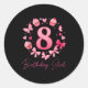 8th Birthday Girl Aesthetic Coquette Bow Classic Round Sticker