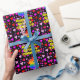 This happy and colourful birthday themed wrapping paper design features a large number “8” having a rainbow spectrum gradient inspired pattern. It also features the message “Happy 8th Birthday,”, and a custom name. The background features a pattern of purple, pink, and red heart shapes of various sizes. Personalised birthday themed wrapping paper like this might be a fun way to wrap a gift or present being given to somebody who is celebrating their 8th birthday. [~Z0000549]