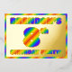 The front of this upbeat and fun eighth birthday celebration/party foil invitation card features a personalised name, a large number “8th”, the message “BIRTHDAY PARTY!”, and a border, all featuring a joyful, colourful, rainbow spectrum inspired gradient pattern. The back features personalised details about the event, such as the date, time, location/venue, and any other information that may be important. Eye-Catching, exciting, editable invitations like these might be used to invite guests to a birthday gathering being held in celebration of somebody’s 8th birthday. [~Z0000593]