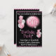 8th Birthday Party Invitation with balloons. Pink & black colour scheme.