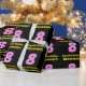 This fun and joyful birthday themed wrapping paper design features a large number "8" having a dark pink and light pink stripes pattern containing heart shapes. It also features the birthday greeting message "Happy 8th Birthday,", and a personalised recipient name. Birthday themed wrapping paper like this might be used when giving a gift or present in celebration of somebody’s eighth birthday. [~Z0000435]