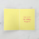 This card is great fun and good quality. I loved the humour inside and on the back. There is the opportunity to change the orientation of this card from landscape to portrait, which I did. It is relatively straightforward to amend the typeface to fit the new orientation. It was well packaged with no plastic. The printing on this card is excellent.