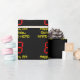 This fun and silly birthday themed wrapping paper design features a large number "8" with a red seven segment digital display inspired appearance, along with the message "Happy 8th Birthday," and a customisable name in nerdy retro style yellow text, on a black coloured background. Wrapping paper like this might be used when wrapping gifts being given to somebody in celebration of their 8th birthday. [~Z0000387]