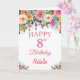 8th Birthday Watercolor Floral Flowers Pink Card with personalised name and age. For further customisation, please click the "Customise it" button and use our design tool to modify this template.