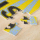 A fun, medium-difficulty basketball puzzle in shades of blue, yellow, black and white for older kids with red-green colour blindness.