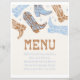 8x10 Western Party Menu Sign. This sign will be printed onto 8.5x11" heavy white cardstock paper. You will trim off white border to get the 8x10" size. You can frame the sign or display however you would like.