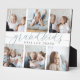 Create a sweet gift for a beloved grandma or grandpa with this beautiful 8x10 photo collage plaque. "Grandkids make life grand" appears in the centre in smoky blue-green and grey calligraphy lettering on a white background. Customise with 6 photos of their grandchildren.