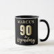 90 & Legendary Gold 90th Birthday Mug. Celebrate 90th birthday with this elegant, customizable mug. Featuring bold, metallic gold-tone text '90 & Legendary', this design is ready for you to personalize with the name. It's the perfect gift to honor a father, grandfather, or cherished friend reaching this incredible milestone. This mug is ideal for birthday parties.