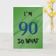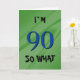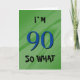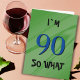 90 So what 90th Birthday Funny Quote Card. A great greeting card for someone celebrating their 90th birthday. It comes with a funny quote I`m 90 so what, and is perfect for a person with a sense of humor. Customize the text inside or erase.