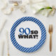 90 So what Positive Blue Stripe 90th Birthday Paper Plate