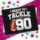 This football birthday design is perfect for a 90th birthday football theme birthday party to celebrate turning 90 years old! Features 'Ready To Tackle 90' 90th birthday football quote with football graphic. Perfect for anyone who loves football turning 90 years old!