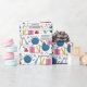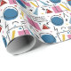A vibrant, retro-inspired pattern featuring a variety of geometric shapes. The design is chraacterised by bold colours, such as pink, blue, yellow, and black, and a playful mix of triangles, circles, squares, and lines. The overall aesthetic evokes a nostalgic 90s vibe, reminiscent of vintage computer graphics and pop culture trends.