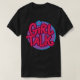 I give wanted to give this a 4 instead of a 5 because these Basic DARK T0shirts run unexpectedly SLIM or Narrow. Which is great if you do not have a potbelly, but I have a paunch. It isn't the shirt's fault that I've got a beer belly. The design and shirt itself is a quality cotton shirt. The color is more of a deep purple, but still a very pretty color. The Basic DARK T-shirts run a bit SLIMMER than the Basic Ts. The neck is a fraction narrower (or seems to be narrower) also. I'm a paunchy middle-aged woman and my neck is 12 inches (31cm) thick and the neckline fell about the same as in the photo of the man, and I had the desire to tug it a bit. So if you're a thick necked man or like loose shirts, be aware these are slimmer shirts. Once I get rid of my lockdown paunch it'll look great. The shirt washed well in cold water with no apparent bleeding. We don't have a dryer, so it hung dry. Did not shrink. Love the colors and the design. The design looks smaller on my shirt than it does on the model on-line. But still, it looks good on the shirt. The printing looks as it does on the model, just the size seems fractionally smaller. Washed garment in cold water, hung dry and design appeared unaffected.
