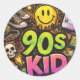 90s Kids Grunge Seamless Pattern: Pizza, Skeletons Classic Round Sticker