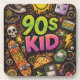 90s Kids Grunge Seamless Pattern: Pizza, Skeletons Coaster