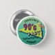 90's Party button featuring a fun style typography of '90's Party''. Design includes elements of blues, oranges, and pinks, yellow, ripped edges, geometric patterns and shapes inspired by the 90's. Includes a template for personal customisation.