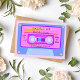 A 90's inspired design with an audio cassette in vaporwave colours, with text for you to put details for a birthday party.