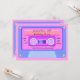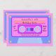 A 90's inspired design with an audio cassette in vaporwave colours on bubblegum pink, with text for you to put details for a birthday party.