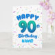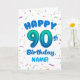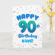 Celebrate their 90th birthday with a bright, cheerful, and personalizable birthday card! This custom name birthday card features a bold number ninety balloon and colorful confetti.