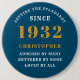 90th Birthday 1932 Elegant Blue Gold Name Year 6 Cm Round Badge