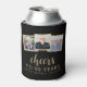 90th Birthday 3-Photo Black Gold Script Cheers Can Cooler