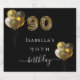 For an elegant 90th birthday party. A black background, decorated with balloons. Number 80 is written with a trendy balloon style font, leopard pattern. Personalize and add a name and a date. The word birthday is written with a modern hand lettered style script with swashes.