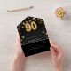 90th birthday black gold stars rsvp all in one invitation