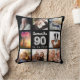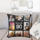 A unique gift for a 90th birthday, celebrating her life with a collage of 8 of your own photos, pictures. Personalise and add her name and a date. A chic black background. The name is written with a modern hand lettered style script, number 90 with a faux silver balloon style font.