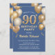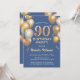 90th Birthday Blue and Gold Glitter Balloons Invitation