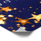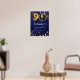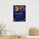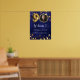 A welcome posters for a 90th birthday party. A navy blue background with elegant faux gold stars. The blue colour is uneven. Personalise and add a photo, name and text. White letters.