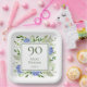 These blue hydrangea 90th birthday party/brunch 9" square paper plates are whimsical and stunning! With their watercolor multi-hued blue hydrangeas, wispy natural greenery they are perfect for celebrating your wife, mum, sister, aunt, friend, grandmother, great grandmother. By selecting Personalise this template and typing in your information you can see your gorgeous plates in seconds!