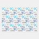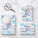90th birthday Gift Wrap on a set of 3 sheets. Personalised two-toned Blue and Black text pattern on a white background can be edited for the Birthday honoree's Name and any Age.