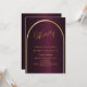 An elegant 90th birthday invitation. A burgundy background with a golden arch on the front.