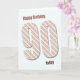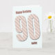 A very modern 90th birthday card. This card is truly fabulous. Big letters in modern stripes on a blue background. Customise for your own unique message.