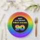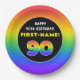 90th Birthday: Colorful Rainbow # 90, Custom Name Paper Plate