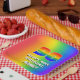 This joyful and vibrant birthday paper plate design features a large number “90” having a colourful rainbow spectrum inspired gradient pattern. It also features the message “HAPPY 90th BIRTHDAY,”, and a personalised name. The background also features an exciting multicolored rainbow spectrum inspired gradient pattern. Cheerful paper plates like this might be used when hosting a party for somebody in celebration of their ninetieth birthday. [~Z0000583]