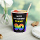 This upbeat and cheerful birthday themed paper cup design features a large number “90“ having a vibrant rainbow spectrum inspired gradient pattern, along with the message “HAPPY 90th BIRTHDAY,”, and a customisable recipient name. Joyful birthday themed paper cups like this might be used at a party for somebody who is celebrating their ninetieth birthday. [~Z0000639]
