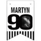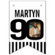 90th black on white add your own three photos birthday bunting flags. Personalise with your own honouring name and three photos in the 0 of 90. Uniquely design by www.mylittleeden.com
