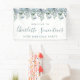 Welcome your guests with this elegant welcome banner. Pretty dusty blue roses, peonies and wildflowers decorate the top border. A classic and easy-to-read font combination takes only minutes to personalise.