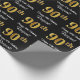 This sophisticated, stylish, and luxurious birthday-themed wrapping paper design features a large ordinal number “90th” having a faux/imitation gold-like look, along with the birthday greeting message “Happy 90th Birthday,” and an editable recipient name in a script-style font. The background is coloured black. Elegant birthday themed wrapping paper like this might be used when giving a gift or present in celebration of somebody’s ninetieth birthday. [~Z0000515]