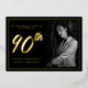 This 90th Birthday Elegant Photo Black and Gold Foil Invitation is perfect for either a woman or a man celebrating their milestone 90th birthday. This invitation with gold foil on the front is easily customisable with all of your event's details, with the person's name on the front, and the date, time, location, and RSVP details on the back.