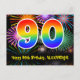 90th Birthday – Fun Fireworks Pattern + Rainbow 90 Postcard