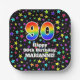 90th Birthday: Fun Stars Pattern and Rainbow “90” Paper Plate