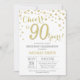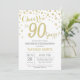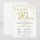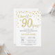 90th Birthday Invitation with Gold Glitter Diamond Background. Gold Confetti. Adult Birthday. Male Men or Women Birthday. For further customisation, please click the "Customise it" button and use our design tool to modify this template.
