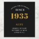 1935 Vintage 90th Birthday Black & Gold Elegant Wine Label. Celebrate your milestone with our exclusive birthday wine label. The meticulously designed label with stunning black and gold hues effortlessly enhances the visual appeal of your favourite wine. The year prominently featured on the label, adds a nostalgic throwback to the day of your birth. Using premium quality material, this label ensures longevity, further cementing its place as a memorable keepsake from your special Birthday celebration. In addition, enjoy the benefit of personalising this label with your name, adding a unique and intimate touch to your celebration. • Stunning Black & Gold Design: Infuses an aura of sophistication & elegance to any wine bottle, making it a perfect centerpiece for your celebration