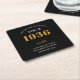 90th Birthday Name 1936 Year Black Gold Custom Square Paper Coaster