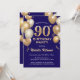 90th Birthday Navy Blue and Gold Glitter Balloons Invitation