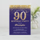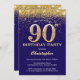 90th Birthday Navy Blue and Gold Glitter Confetti Invitation