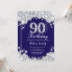 90th Birthday Navy Blue and Silver Diamond Invitation